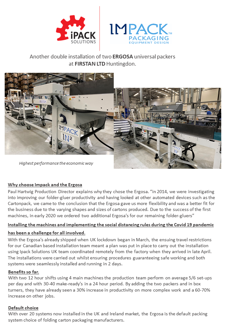 August 2020: Double installation of two Ergosa Universal Packers at Firstan Ltd
