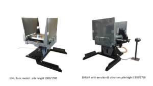 SAMZON are user friendly, reduce downtime and operator injury associated with incorrect and repetitive lifting. The 104 pile-turner is a stationary machine with a self supporting frame which requires no foundation and is fixed to the factory floor. Hydraulics are used to move both platforms simultaneously. Designed so that the platforms can close down to 320mm allowing short runs to be turned without the use of an additional pallet. Versions allowing a maximum height of 1700mm (including pallet) can be chosen. Competitively priced and can be supplied as a fully equipped machine with aeration and vibration: 104LVA