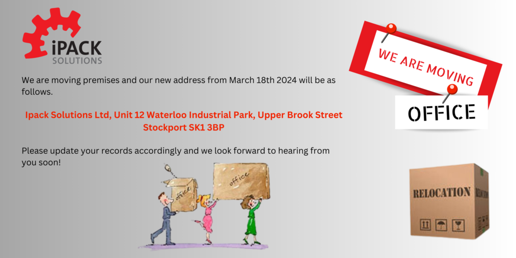 We are excited to inform you that Ipack Solutions Ltd will be moving its office to a new location to better serve our growing needs and enhance our overall work environment. The office will be closed on Wednesday 13th March to facilitate the move. No regular work will take place on this day. During the moving period, there may be some disruption to our normal operations. Your understanding and cooperation are greatly appreciated. All other information remains the same.